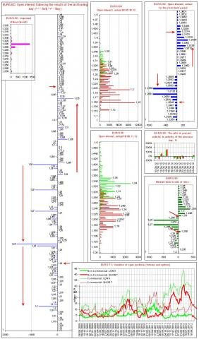 Продолжается сокращение объема коротких спекулятивных позиций. Однако объем длинных спекулятивных позиций остается вблизи минимума. Только при его росте возможно дальнейшее движение EUR вверх.