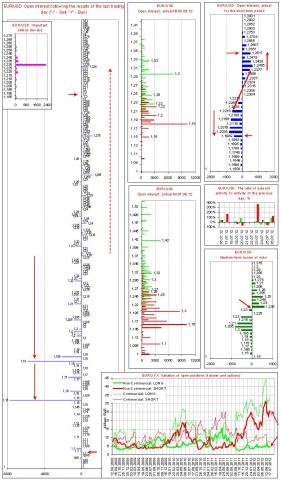 Объем коротких спекулятивных позиций значителен. Объем длинных спекулятивных позиций вблизи минимума. Ситуация располагает к формированию сильных движений (причем в обе стороны). Вместе с тем закрытие коротких позиций спекулянтов в итоге приведет к формированию более сильного движения, которое может вылиться в восходящий тренд по EUR.