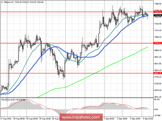 Пока торговля ведется ниже сопротивления 7 250, давление на биткоин будет постепенно возрастать, а очередное формирование ложного пробоя на этом уровне будет сигналом к продажам. Первой целью станет область поддержки 7 020, прорыв которой приведет к более крупному снижению в район уровня 6 800, где рекомендую фиксировать прибыль. В случае роста выше 7 250, продажи лучше всего отложить до обновления нового максимума 7 610.