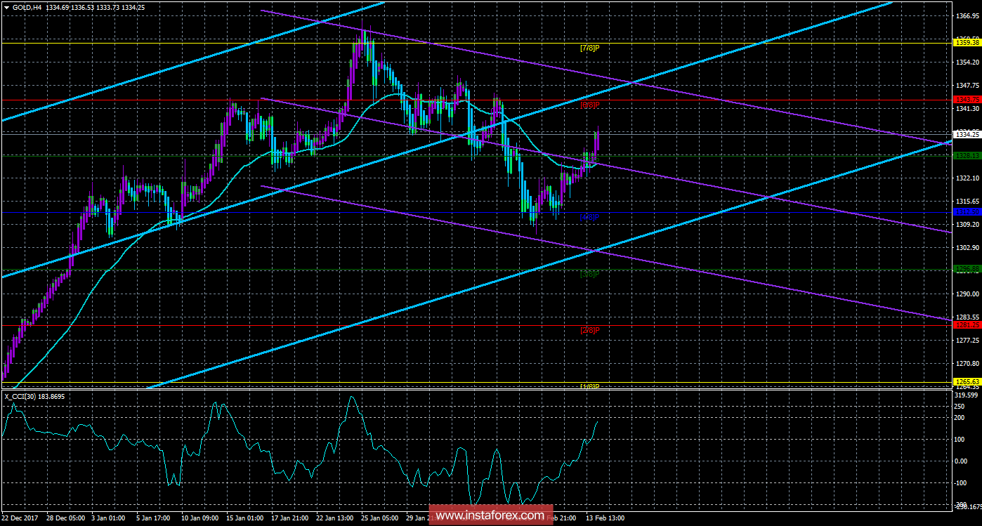 Техническая картина инструмента GOLD по системе «Каналы регрессии» за 14 февраля 2018 года