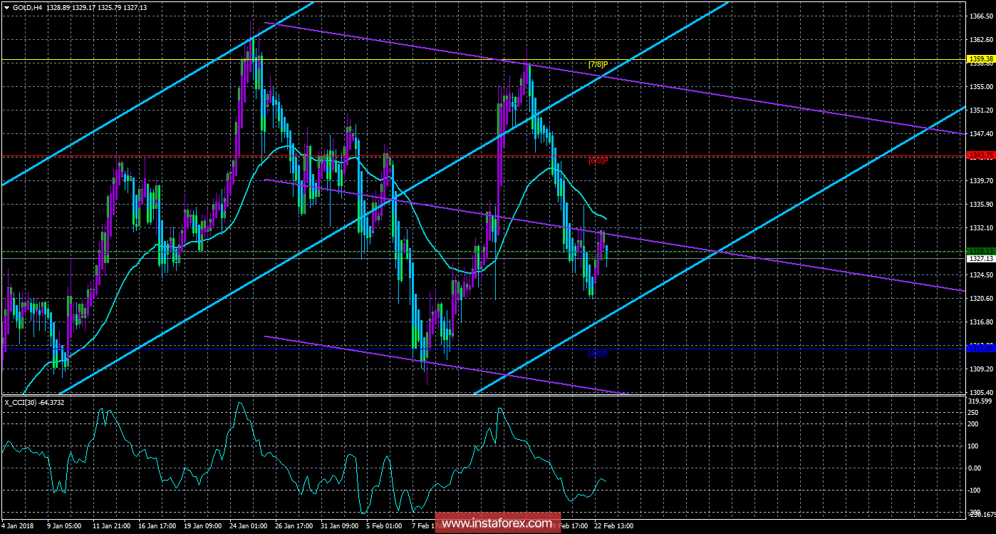 Техническая картина инструмента GOLD по системе «Каналы регрессии» за 22 февраля 2018 года
