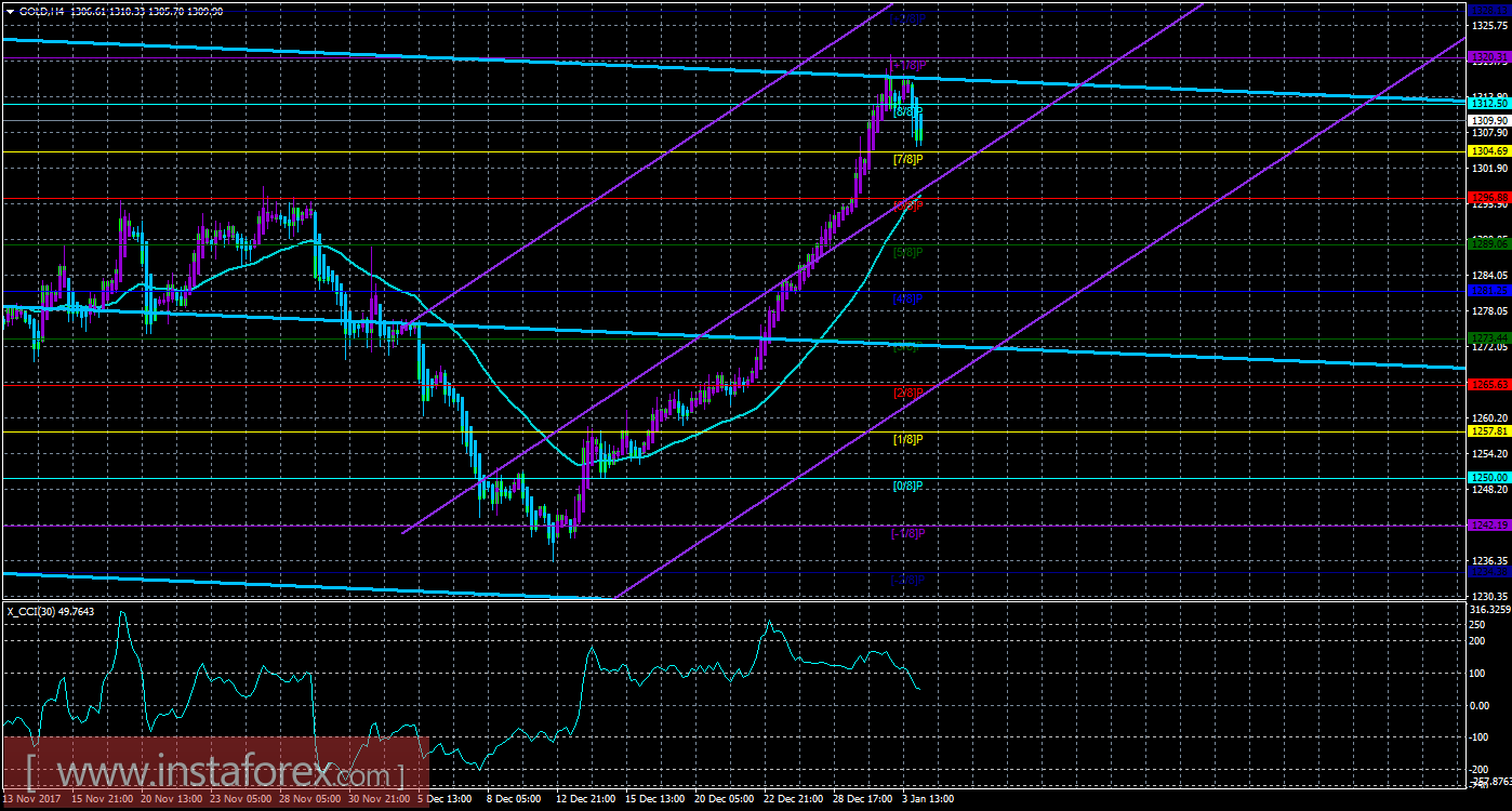 Техническая картина инструмента GOLD по системе «Каналы регрессии» за 4 января 2018 года