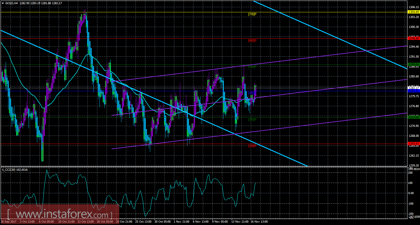 Техническая картина инструмента GOLD по системе «Каналы регрессии» за 20 ноября 2017 года