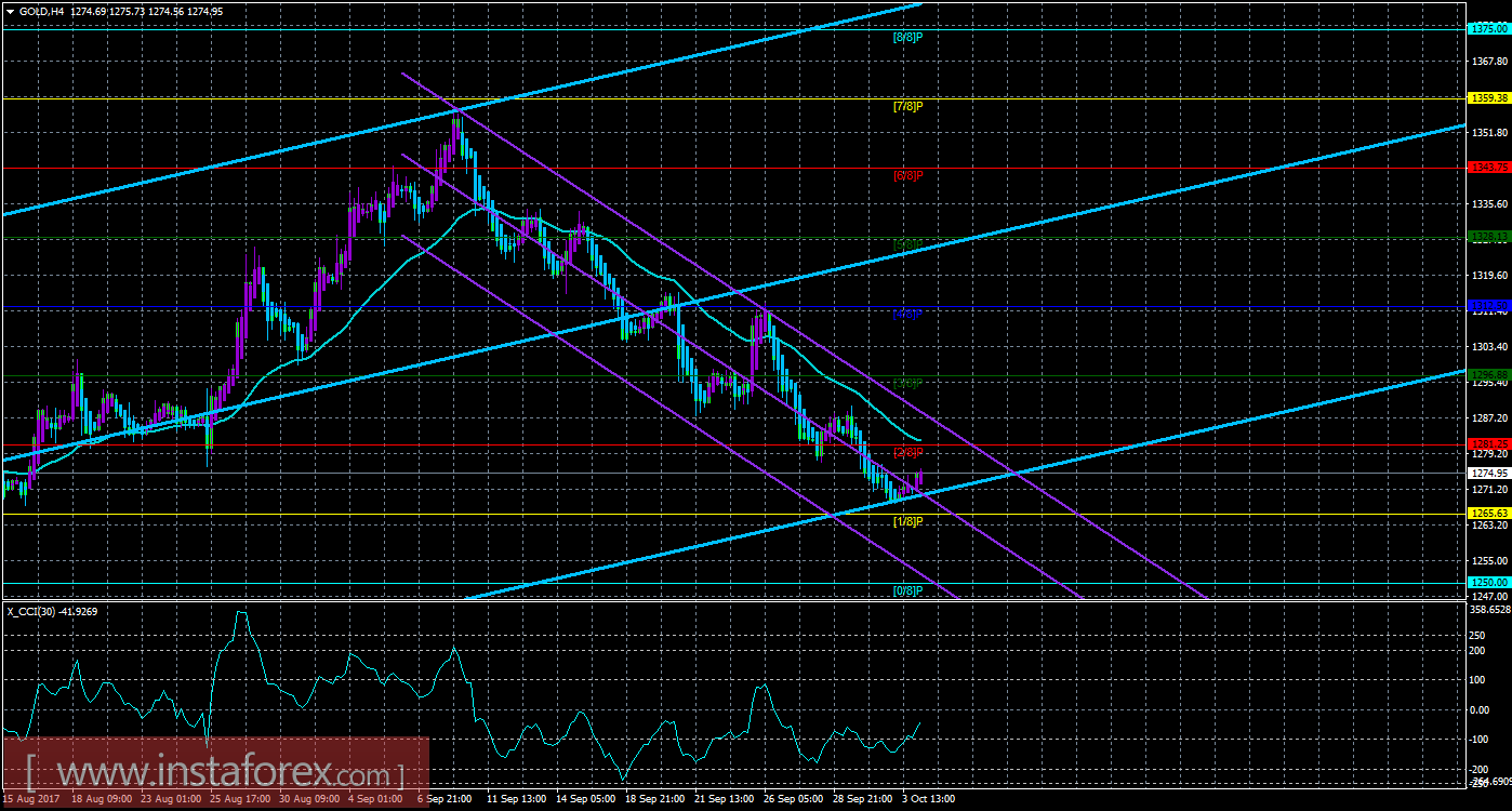 Техническая картина инструмента GOLD по системе «Каналы регрессии» за 4 октября 2017 года