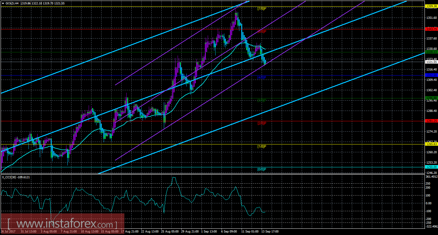 Техническая картина инструмента GOLD по системе «Каналы регрессии» за 13 сентября 2017 года