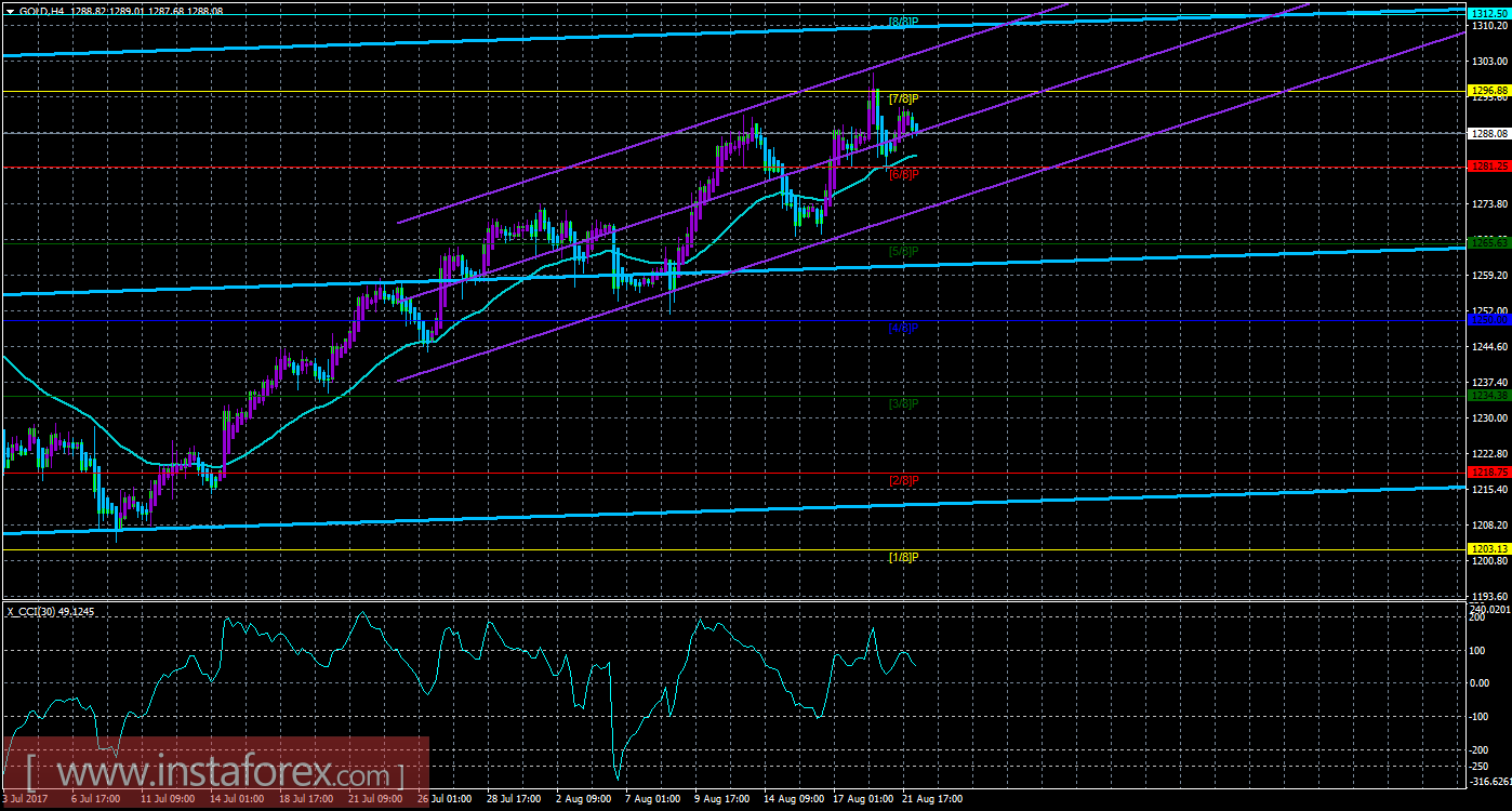 Техническая картина инструмента GOLD по системе «Каналы регрессии» за 28 августа 2017 года