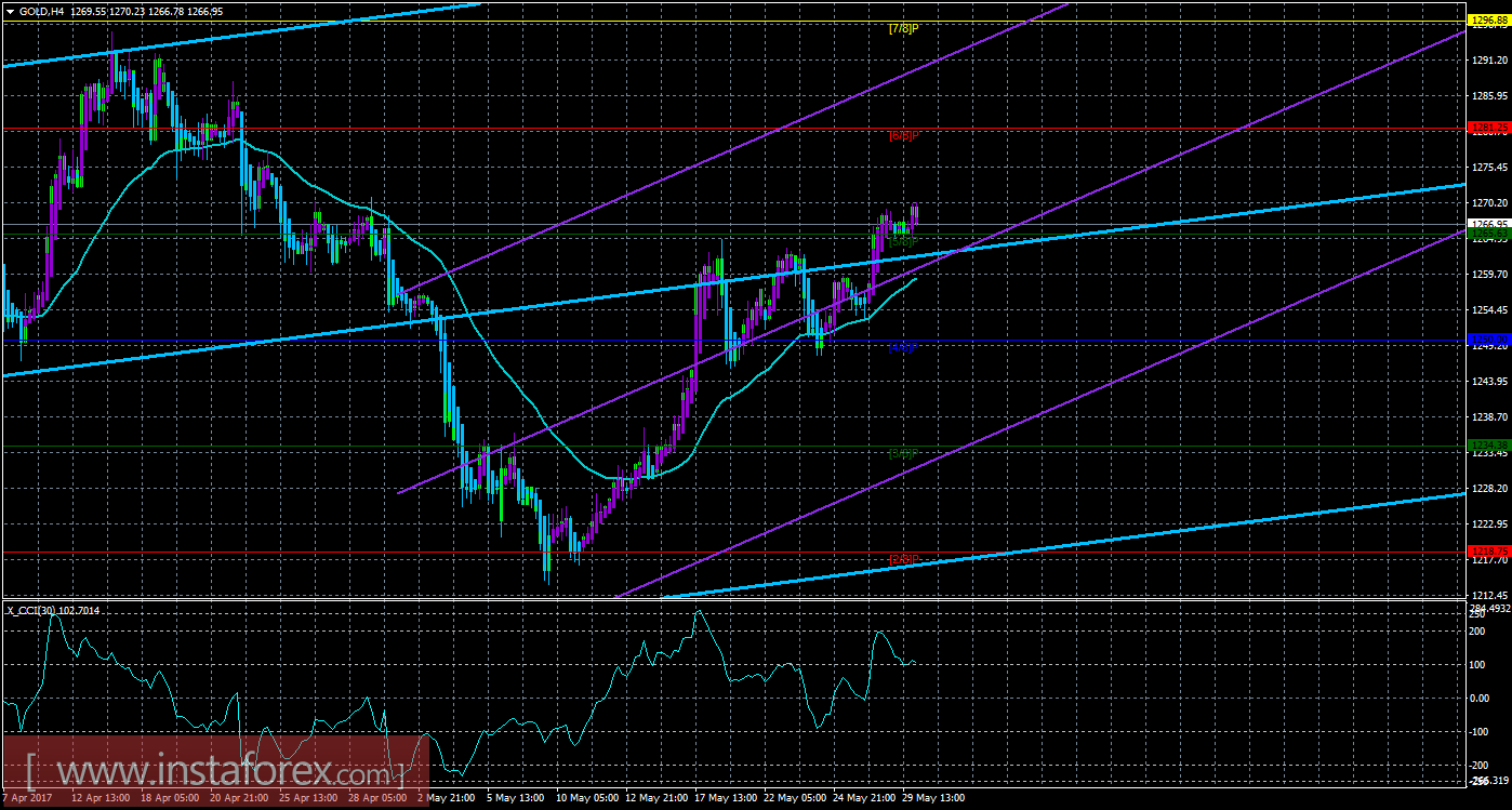 Техническая картина инструмента GOLD по системе «Каналы регрессии» за 29 мая 2017 года
