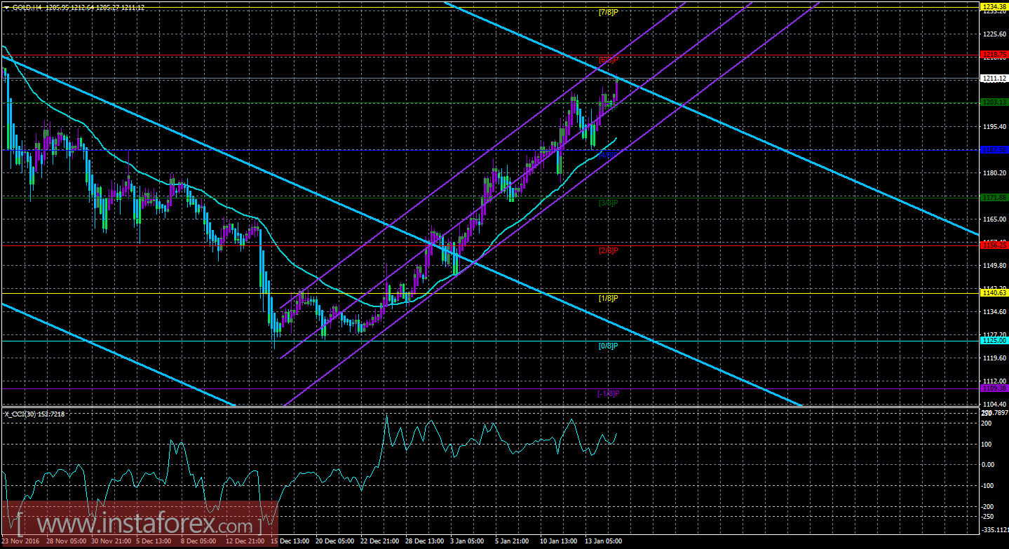 Техническая картина инструмента GOLD по системе «Каналы регрессии» за 16 января 2017 года