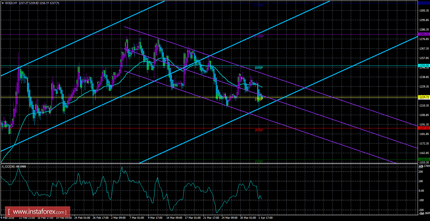 Техническая картина инструмента GOLD по системе «Каналы регрессии» за 1 апреля 2016 года