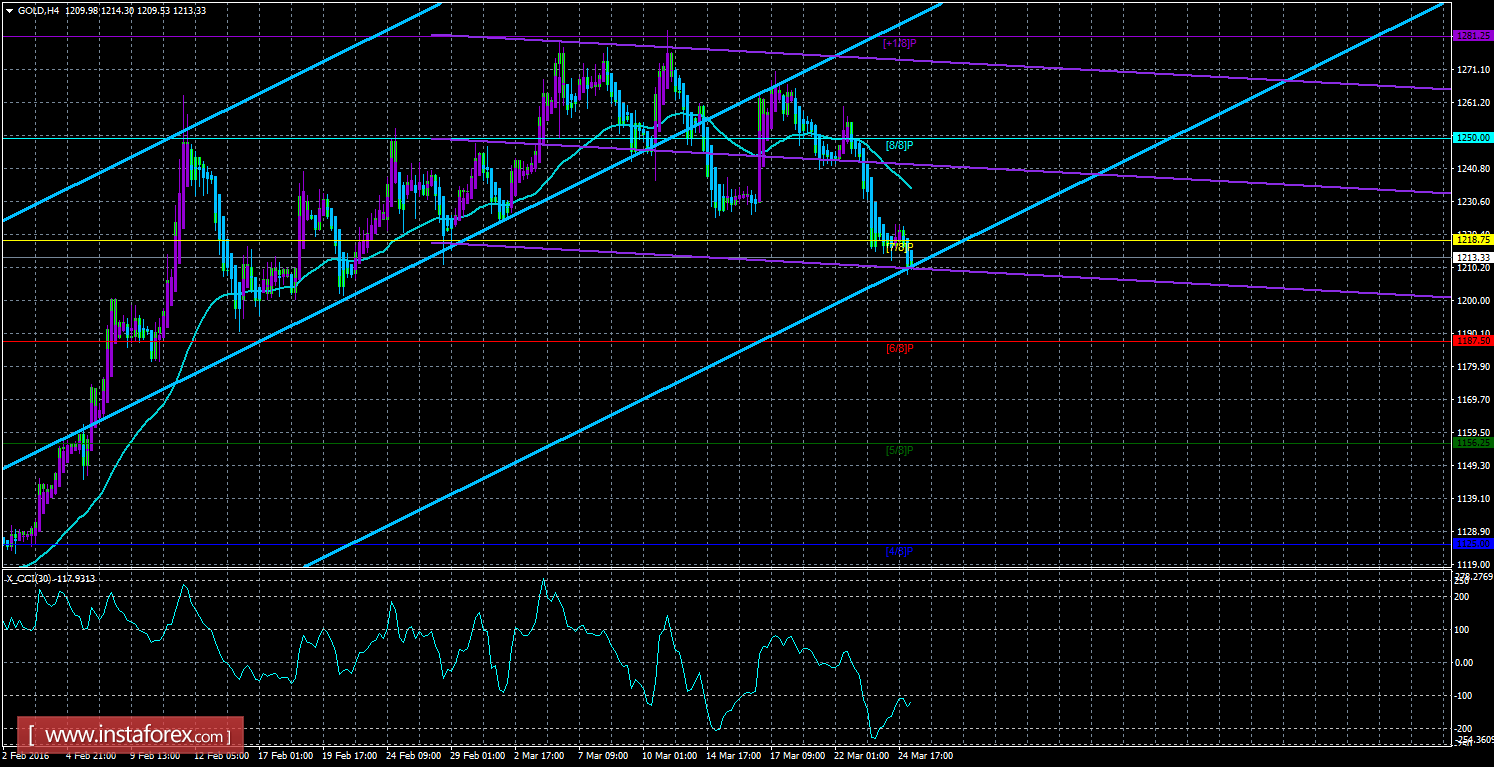 Техническая картина инструмента GOLD по системе «Каналы регрессии» за 25 марта 2016 года