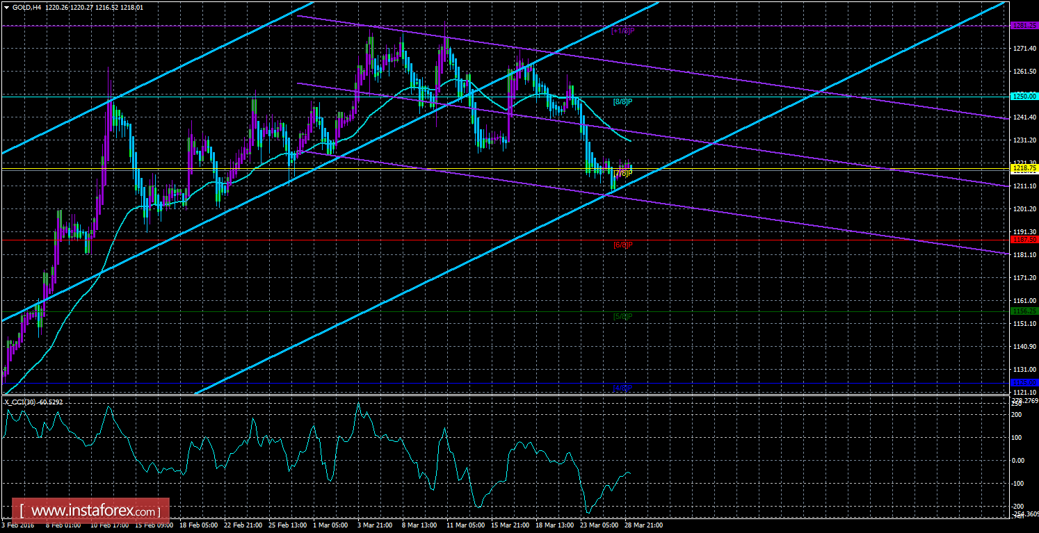 Техническая картина инструмента GOLD по системе «Каналы регрессии» за 28 марта 2016 года