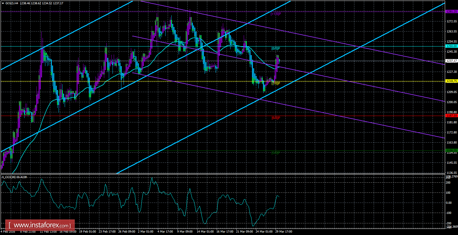 Техническая картина инструмента GOLD по системе «Каналы регрессии» за 29 марта 2016 года