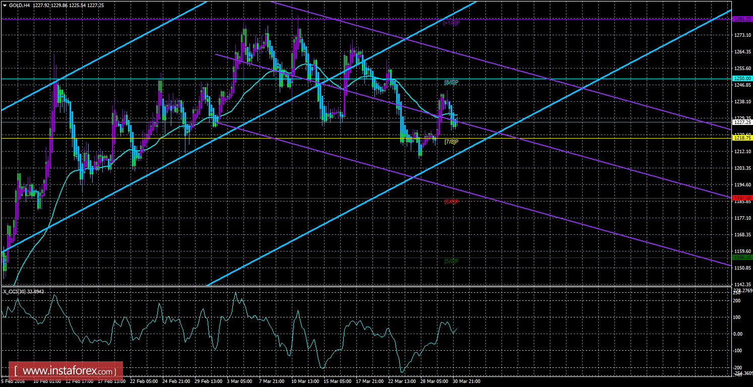 Техническая картина инструмента GOLD по системе «Каналы регрессии» за 30 марта 2016 года