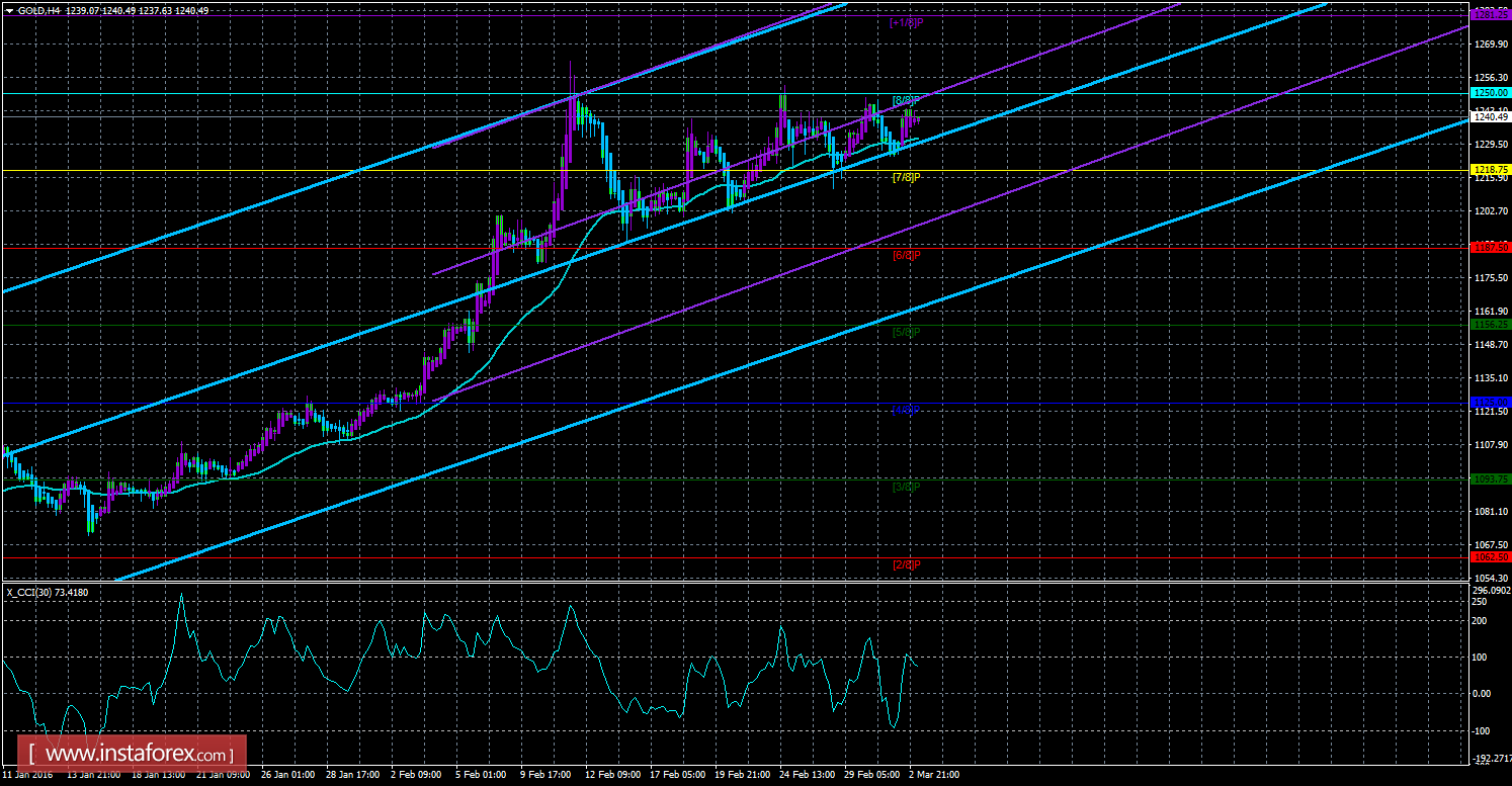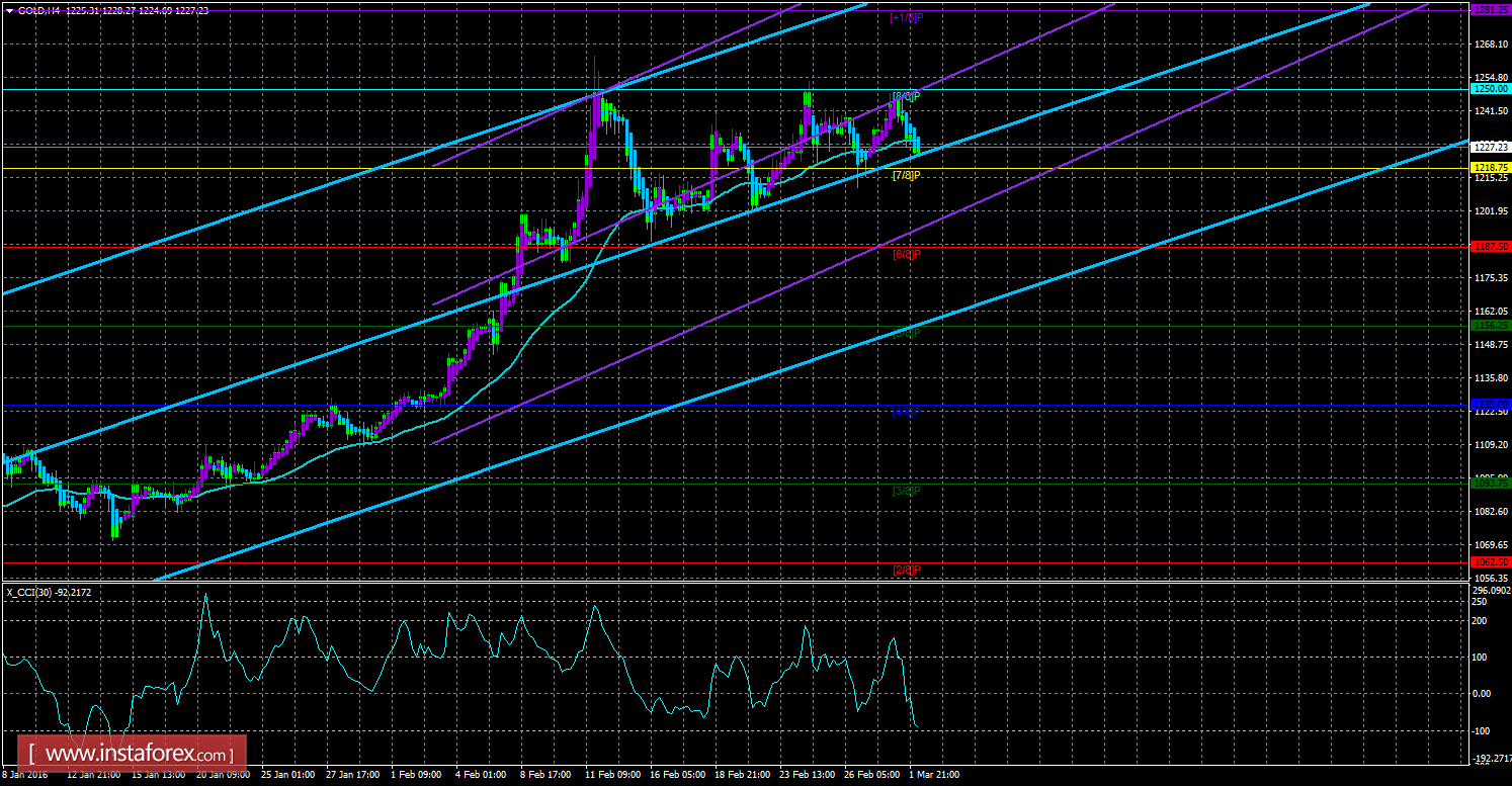Техническая картина инструмента GOLD по системе «Каналы регрессии» за 1 марта 2016 года