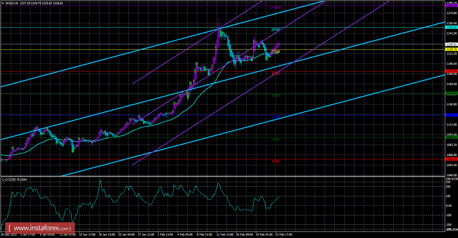 Техническая картина инструмента GOLD по системе «Каналы регрессии» за 24 февраля 2016 года