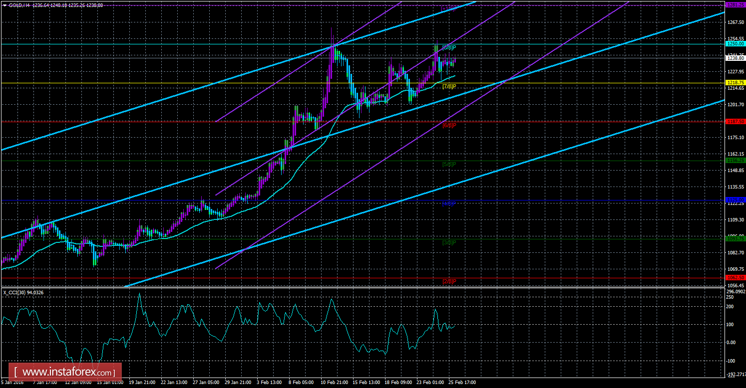 Техническая картина инструмента GOLD по системе «Каналы регрессии» за 25 февраля 2016 года