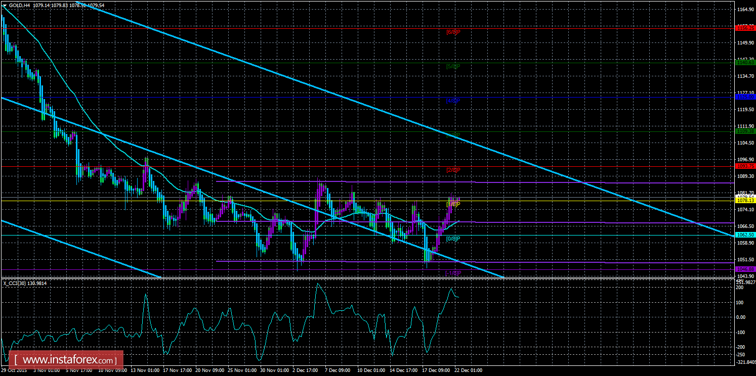 Техническая картина инструмента GOLD по системе «Каналы регрессии» за 22 декабря 2015 года
