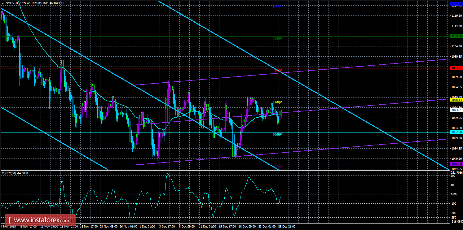Техническая картина инструмента GOLD по системе «Каналы регрессии» за 30 декабря 2015 года