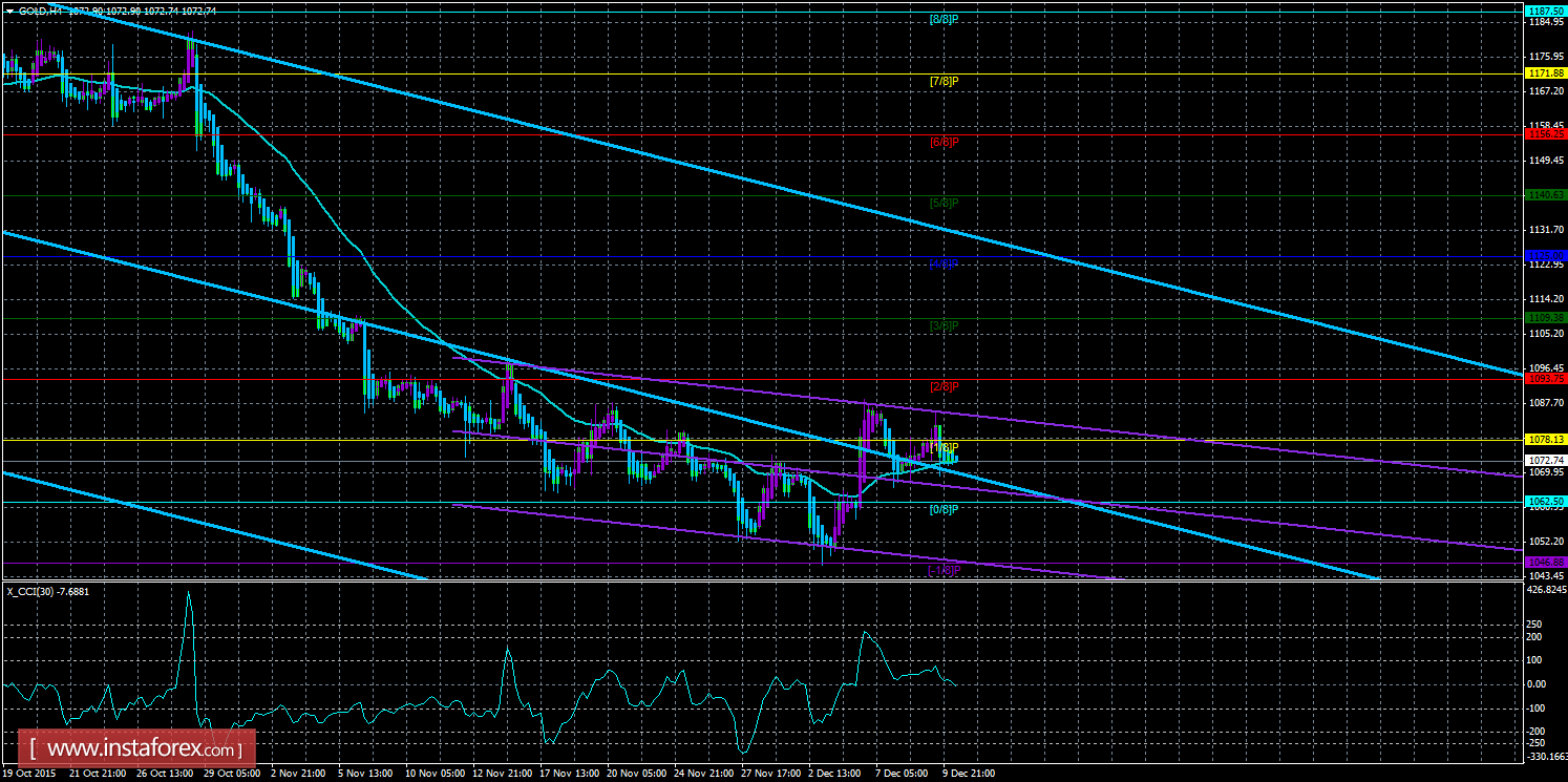 Техническая картина инструмента GOLD по системе «Каналы регрессии» за 8 декабря 2015 года