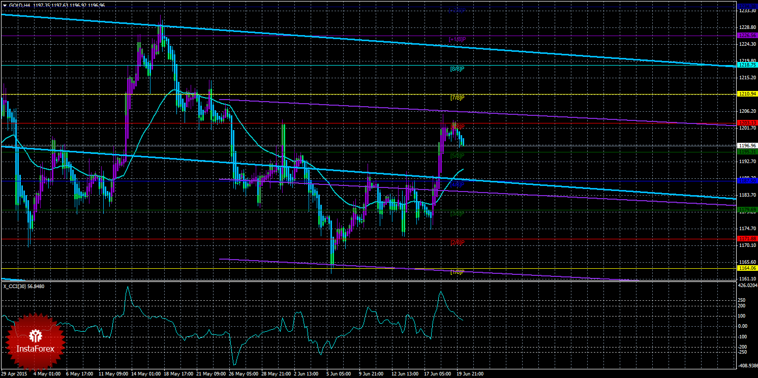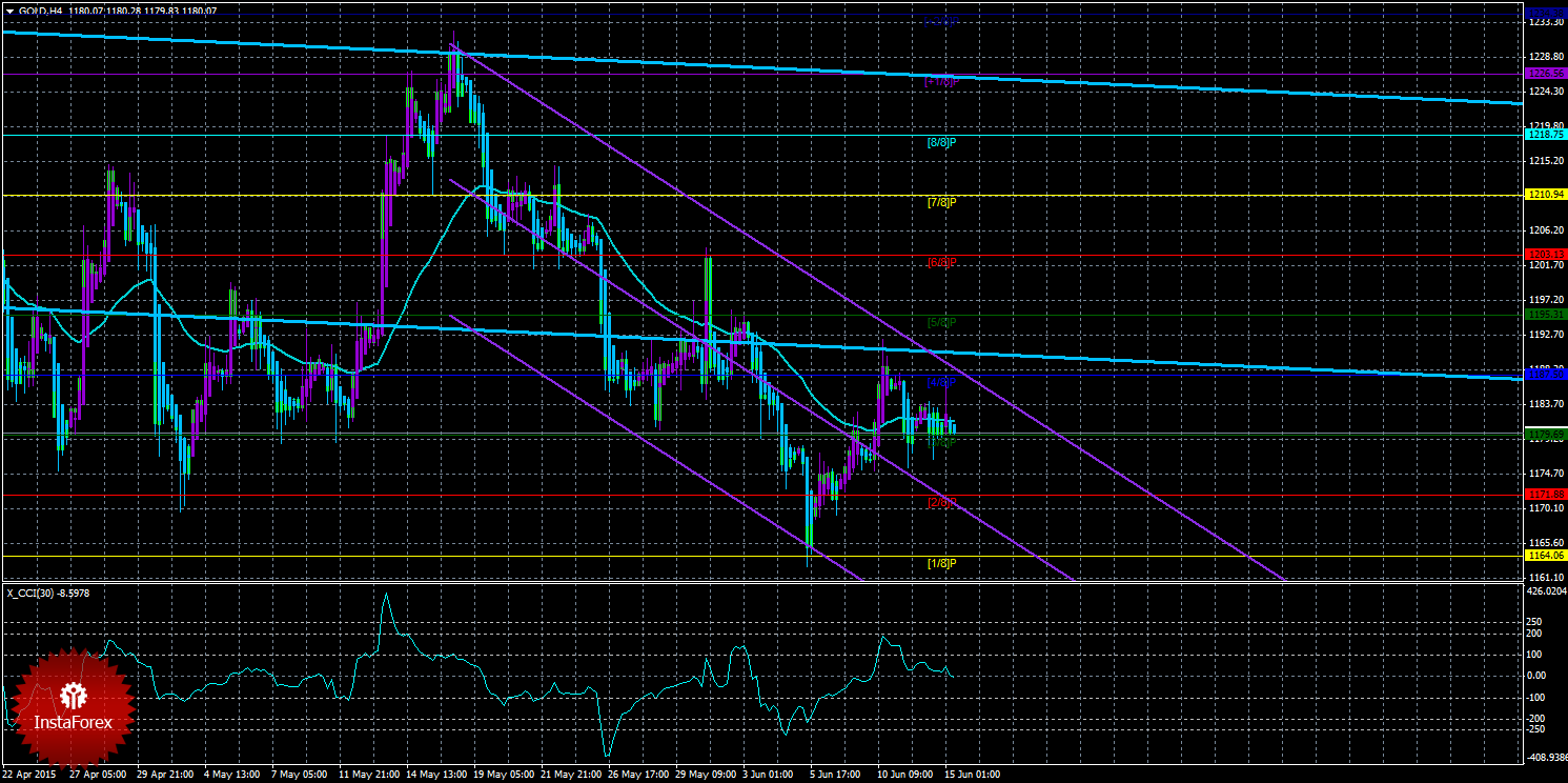Техническая картина инструмента GOLD по системе «Каналы регрессии» за 18 июня 2015 года