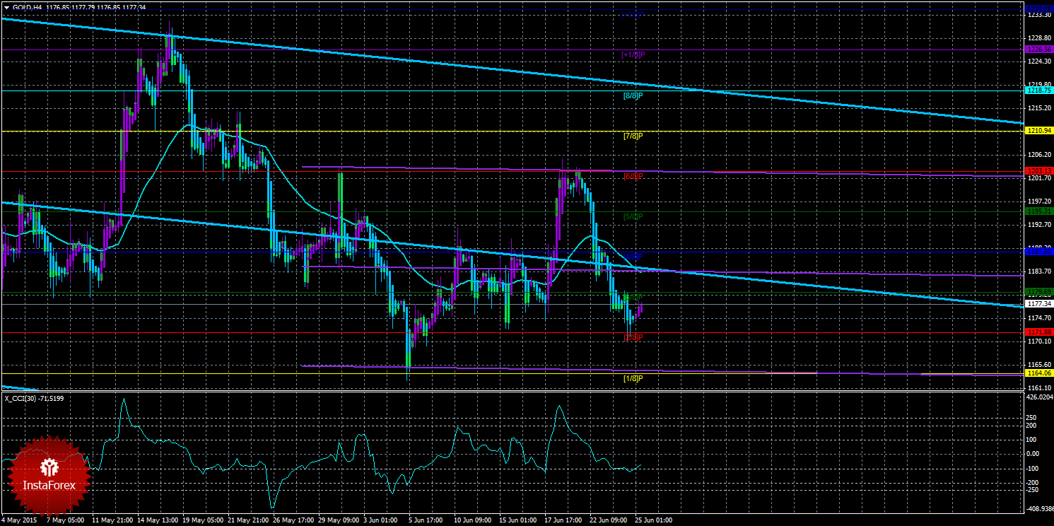 Техническая картина инструмента GOLD по системе «Каналы регрессии» за 24 июня 2015 года