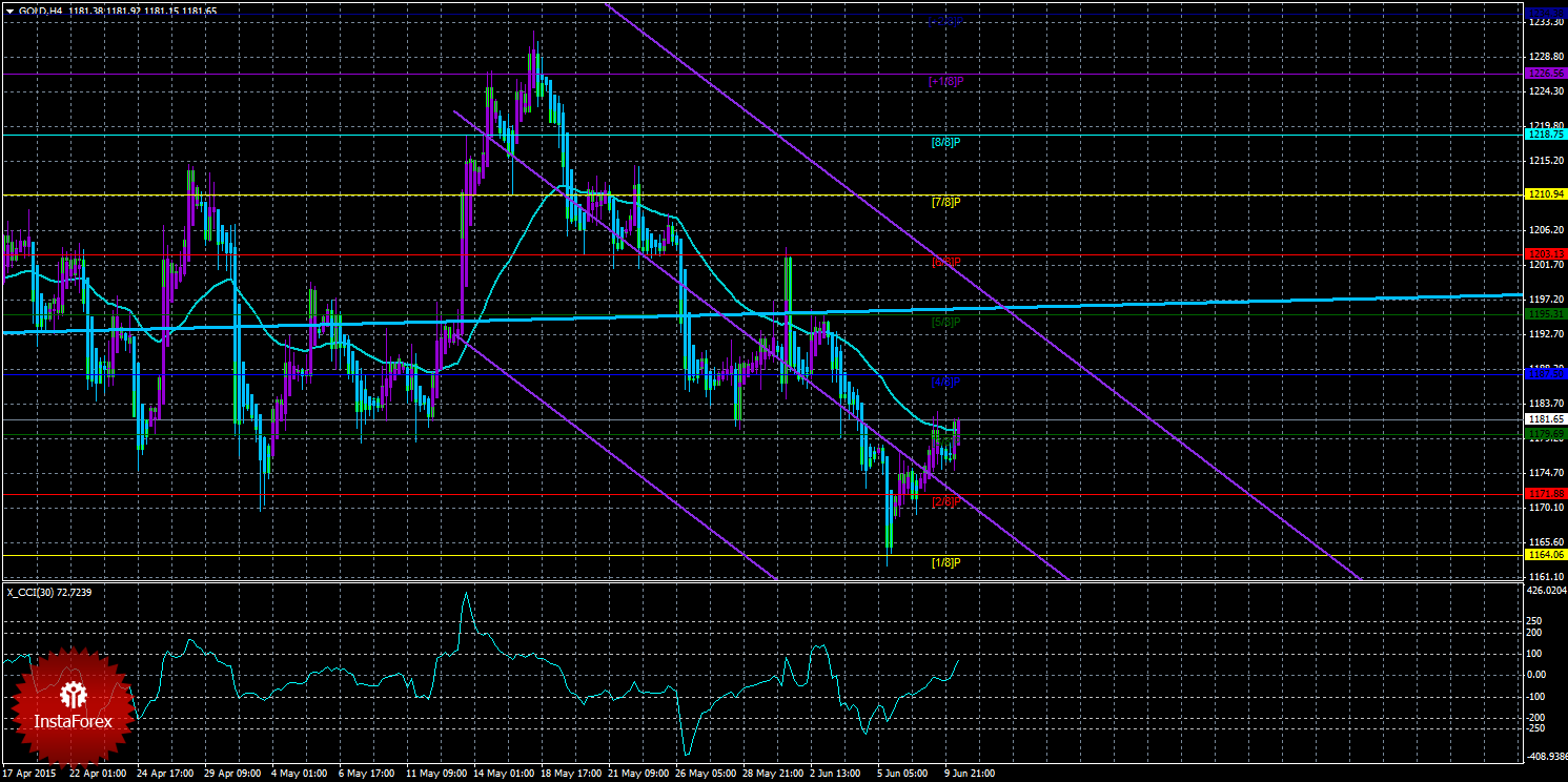 Техническая картина инструмента GOLD по системе «Каналы регрессии» за 8 июня 2015 года