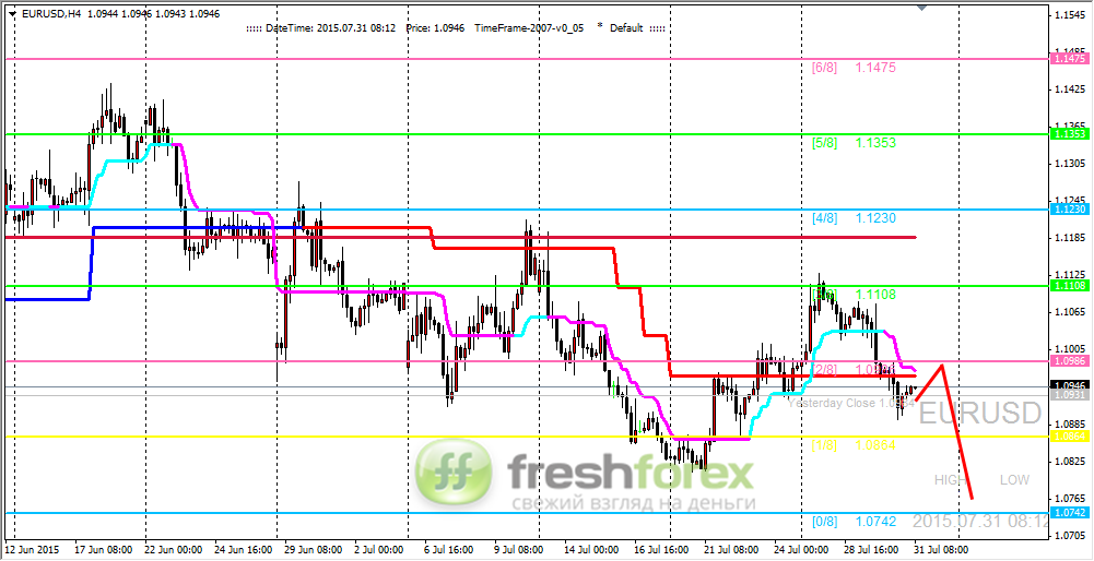 31 июля 2015, EUR/USD. Пара продавила область поддержки.