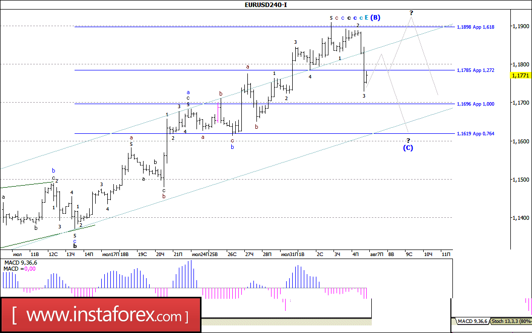Волновой анализ Форекс по валютным парам EUR/USD, GBP/USD, USD/CHF, USD/JPY за 8 августа 2017 года