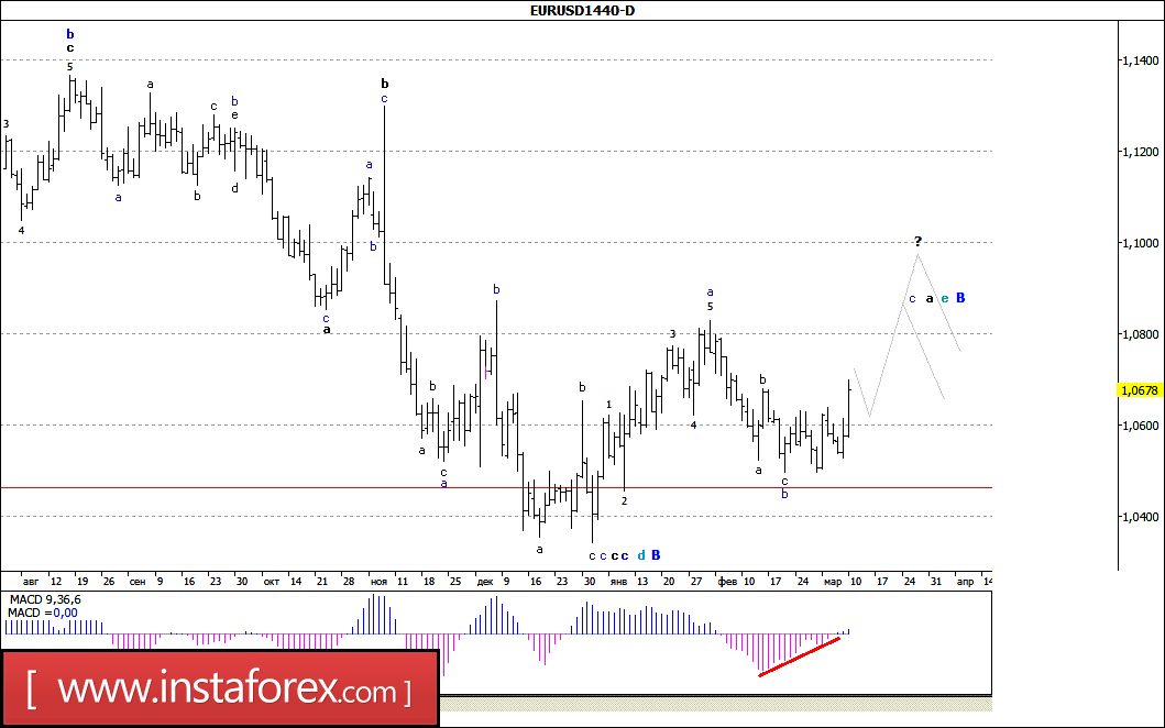 Волновой анализ Forex по валютным парам EUR/USD, GBP/USD, USD/CHF, USD/JPY за 8 марта 2017 года