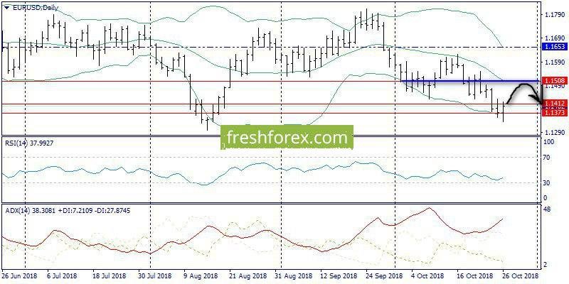 08 ноября 2018, EUR/USD. EURUSD. Возможно дальнейшее снижение к 1.1355.
