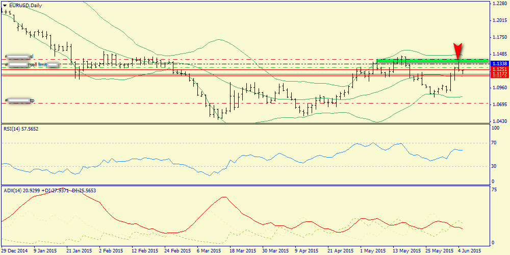 15 июня 2015, EUR/USD. Продаем после отката вверх.