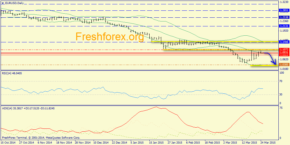 01 апреля 2015, EUR/USD. Ждем доработку цели 1.0940 перед продажами.