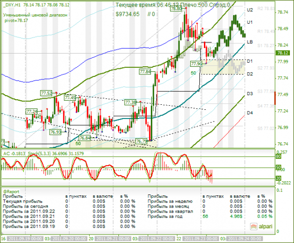 В четверг на американской сессии индекс доллара поднимался до уровня 78,80. Резкий рост доллара начался в среду после заседания ФРС США и усилился в четверг после выхода данных по индексам деловой активности в производственном и сервисном секторе Европы, которые оказались хуже прогнозных значений. Новости из Великобритании тоже подкачали и вызвали новую волну открытия длинных позиций по американскому доллару.