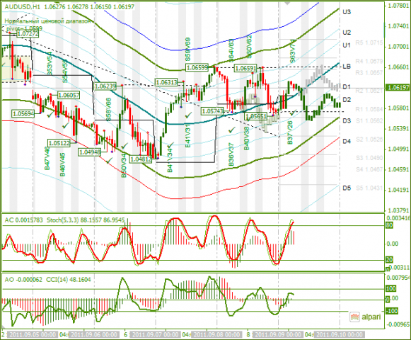 Во вторник курс AUDUSD от балансовой линии снизился до 1,04812. Сегодня в Азии после выхода более сильных, чем ожидалось, данных по ВВП Австралии за второй квартал, курс AUDUSD вернулся к 1,05990. AUD задал темп все основным парам. Сформировались 3 шипа или W-образная модель. От всех валют я сегодня ожидаю флэт. Думаю, что AUDUSD будет в среду торговаться выше балансовой линии.