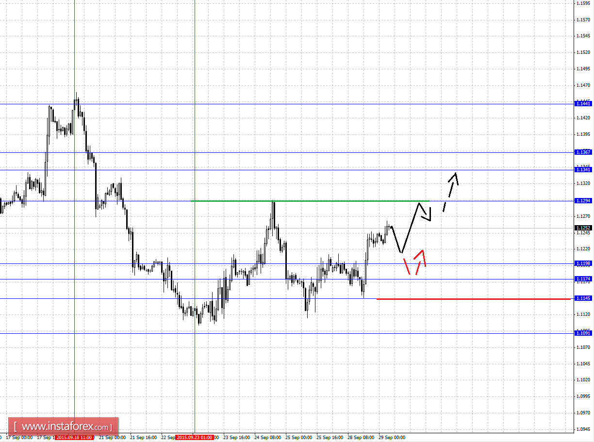 Краткосрочное нисходящее движение возможно в коридоре 1.1158 - 1.1130. пробой последнего значения будет располагать к развитию нисходящей структуры, здесь первая цель - 1.1091.