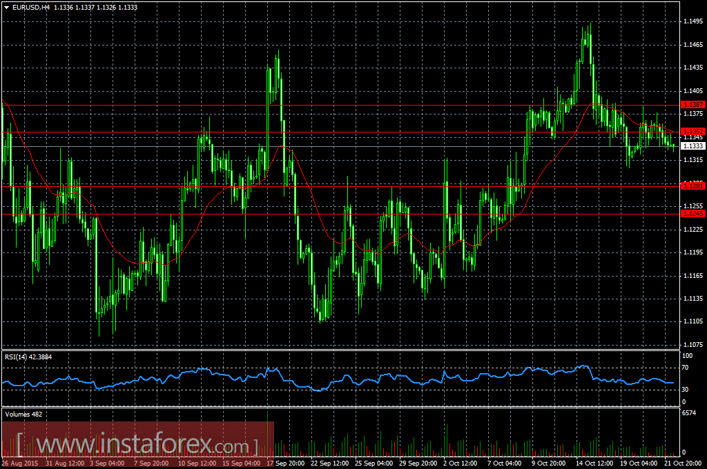 Европейская валюта продолжила снижаться в паре с долларом США и на торгах в пятницу, 23 октября, так как сильный медвежий импульс, сформированный после выступления в четверг президента ЕЦБ Марио Драги, сохранился.