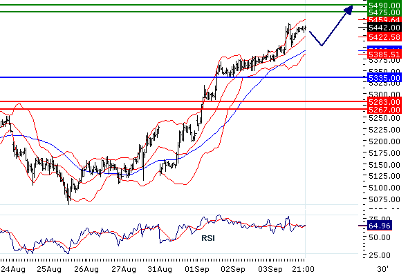 Наше предпочтение: ПОКУПАТЬ выше 5335 с целевыми точками 5475 и 5490.