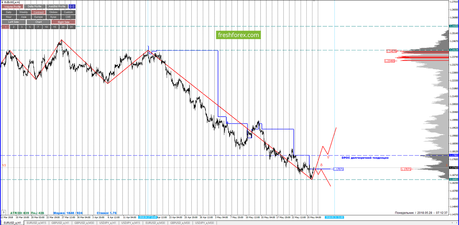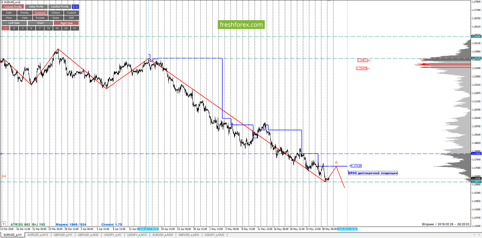 31 мая 2018, EUR/USD. EURUSD: разнонаправленность идей по долгосрочному и среднесрочному плану.