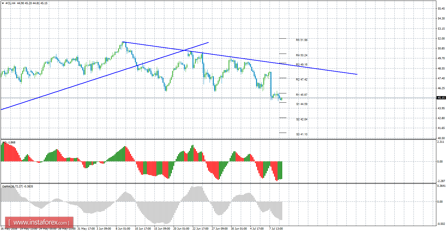Технический анализ сырой нефти за 8 июля 2016 года