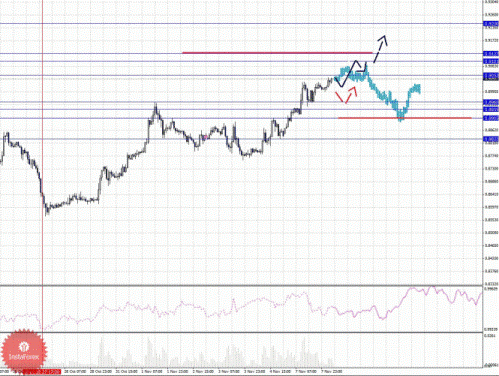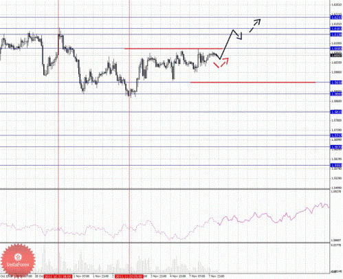 уровень 1.0336, по достижении которого, ожидаем консолидацию в коридоре 1.0311 - 1.0336.