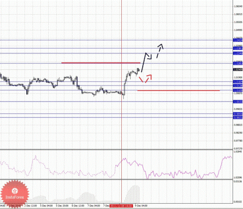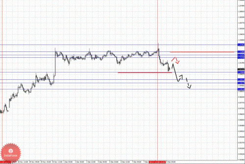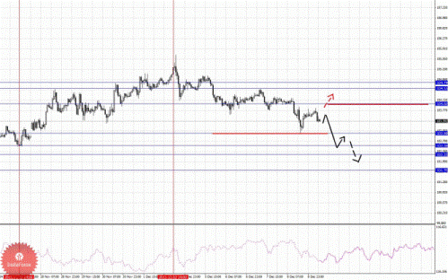 По паре Евро/Доллар мы ожидаем продолжения развития нисходящей структуры от 2 декабря. По паре Доллар/Франк восходящий цикл от 1 декабря остается актуальным. По паре Фунт/Доллар ситуация не изменилась кардинальным образом, однако в последствии Фунт может наверстать упущенное в след за Евро. По паре Доллар/Йена мы рассмотрели восходящие цели относительно локальной структуры от 8 декабря. По паре Евро/Йена продолжения движения книзу ожидаем после пробоя 102.98. По паре Фунт/Йена цена пока находится в области восходящей структуры от 24 ноября.