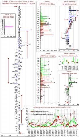 - Комментарий к диаграмме объемов (данные обновляются 1 раз в неделю согласно официальным публикациям сведений о рынке, последние данные от 26.07.11): Динамика объемов спекулятивных позиций указывает на неопределенность.