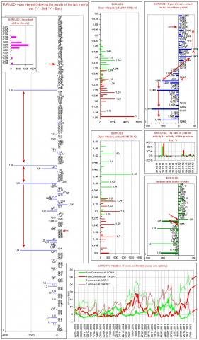 Внимание следует обратить на огромные объемы длинных позиций коммерческих игроков по EUR, которые хеджируют также огромные объемы коротких позиций спекулянтов. Данные объемы больше тех, которые регистрировались во второй половине мая – начале июня 2010 г. Примечательно то, что сейчас схема распределения объемов такова, что импульс к движению EUR с высокой вероятностью может быть сформирован за счет закрытия коротких позиций спекулянтов.
