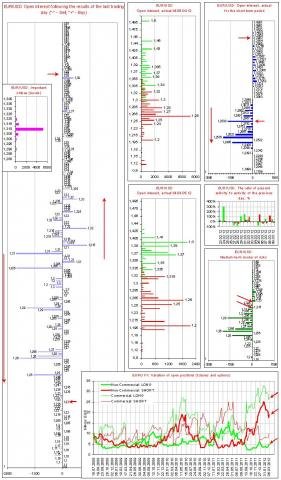 Внимание следует обратить на сокращение беспрецедентного объема коротких позиций спекулянтов по EUR. Тем не менее, объем этот еще очень большой. При этом объем длинных позиций спекулянтов остается низким.