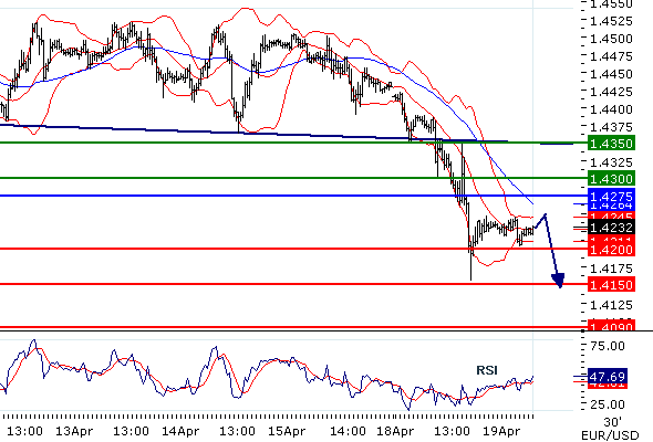 Наше мнение: ПРОДАВАТЬ ниже 1.4275 с целевыми точками 1.42 и 1.415.