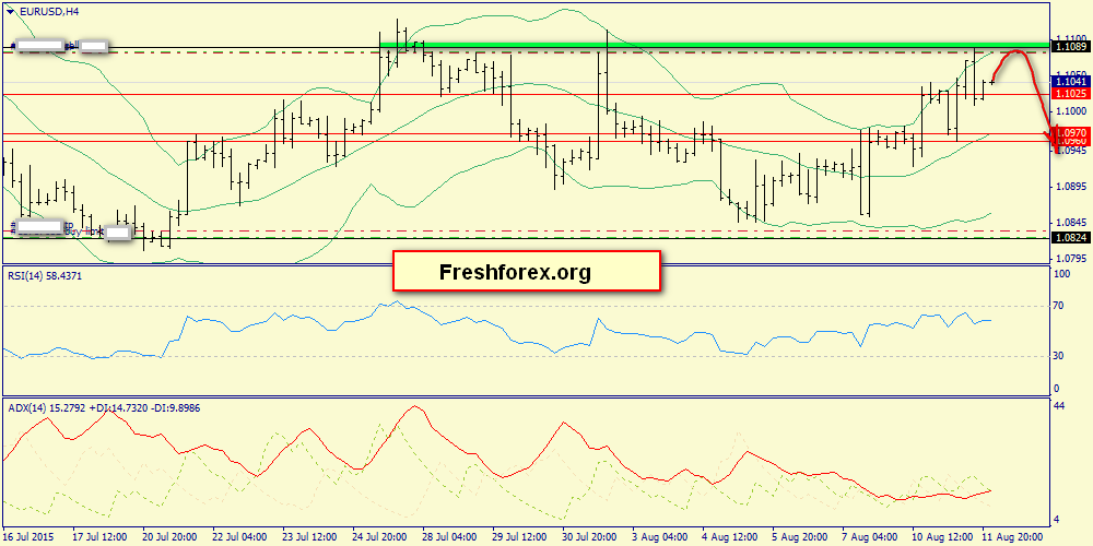 12 августа 2015, EUR/USD. Ждем снижение от 1.1089 к 1.0970.