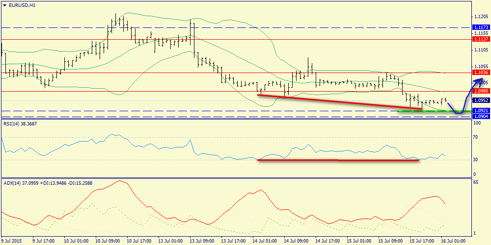 16 июля 2015, EUR/USD. Зона возможного спроса на евро - 1.0882-1.0904.