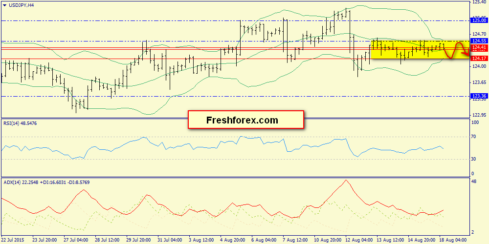 18 августа 2015, USD/JPY. Флэт в коридоре 124.17-124.55.