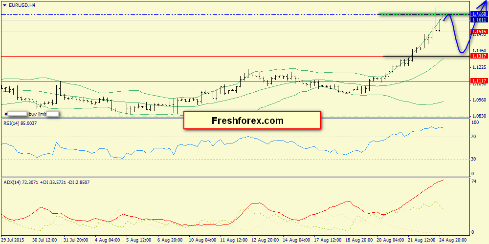 25 августа 2015, EUR/USD. Рабочие уровни - 1.1515 и 1.1660.