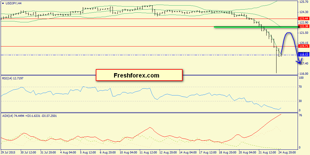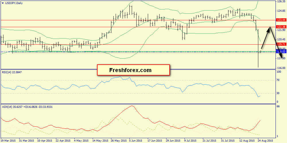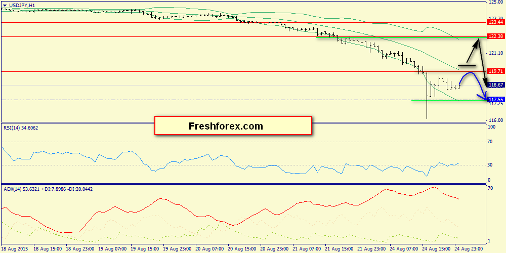 25 августа 2015, USD/JPY. Возможно новое снижение к 117.55.